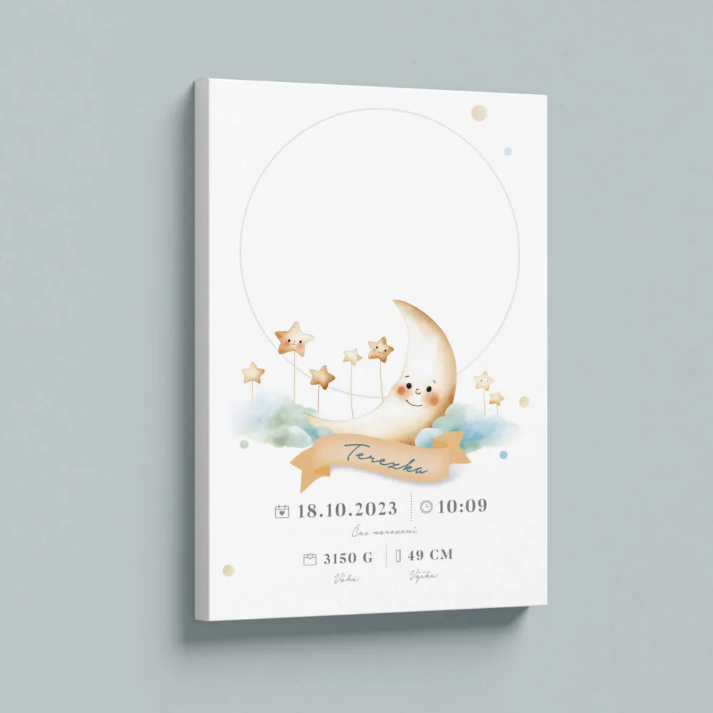 Obohaťte svůj interiér, o vzpomínky na narození Vašeho miminka, které si díky tomuto plátnu vždy připomenete.